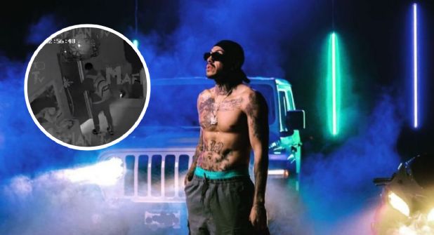 Con forcejeos continuos, la familia se traslada a la planta baja de la propiedad en la colonia La Cima de Zapopan, Jalisco. Se observa al menos a un tercer hombre armado, quien dice: "Queremos platicar contigo". A pesar de los intentos del rapero por resistirse, se ve superado en número y no puede desarmar a sus atacantes.
