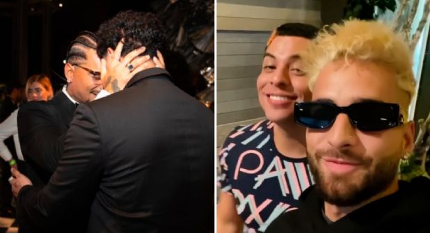 La celebración fue capturada en tiernas fotografías donde se aprecia un fraternal y cálido abrazo, varios palomazos, sonrisas y alegría compartida entre Eduin Caz y Maluma.