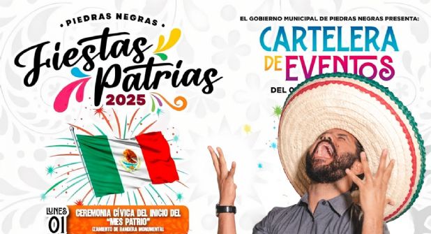 Las Fiestas Patrias 2025 en Piedras Negras no solo son música, la celebración iniciará oficialmente el 1 de septiembre con la ceremonia cívica y el solemne izamiento de la bandera monumental.