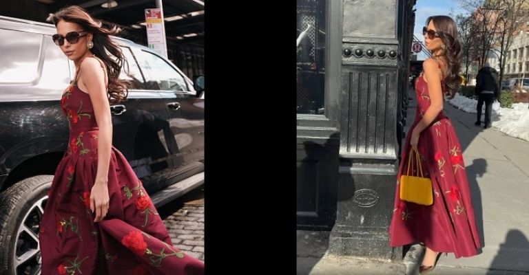 La marca conocida por su elegancia, sofisticación y estilo atemporal vistió a Majo Aguilar con un vestido en corte A, ceñido de color rojo con tocados florales de la colección Primavera Verano 2026, y accesorios en colores vivos.