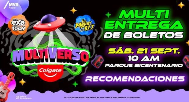 ¡No te pierdas la oportunidad de obtener tus boletos en la primera Multi Entrega este sábado 21 de septiembre y poder asistir a uno de los eventos más importantes del año y disfrutar de una experiencia inolvidable en el Colgate Multiverso 2024!