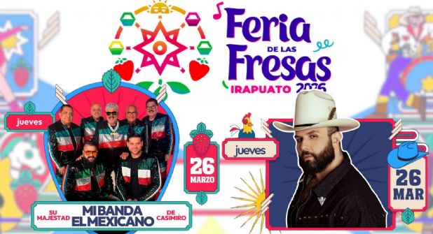La Feria de las Fresas Irapuato 2026 marca una temporada llena de conciertos, gastronomía y diversión para toda la familia. Este 26 de marzo, el talento de Mi Banda El Mexicano y Carín León convierte la celebración en uno de los eventos más atractivos de la semana.
